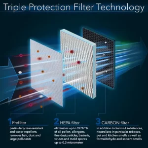 Công nghệ bộ lọc HEPA ba cấp độ: