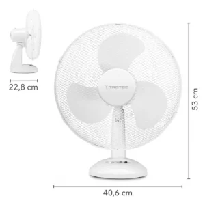 Khi nhiệt độ tăng cao vào mùa hè, quạt bàn TVE 14 với đường kính cánh 40 cm tạo ra luồng gió mạnh mẽ và làm mát. Về mặt thị giác, chiếc quạt bàn nhỏ gọn này ghi điểm với thiết kế rõ ràng và hợp thời trang với màu trắng. Một tính năng thiết thực khác là tay cầm tích hợp để thay đổi vị trí nhanh chóng.